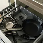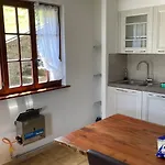 Az apartman kényelme érdekében teljesen felszerelt konyhát biztosít hűtővel, sütővel és konyhai edényekkel.